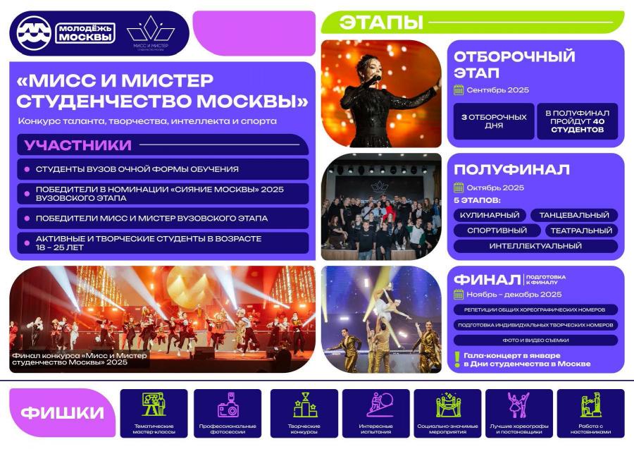 «Конкурс “Мисс и мистер студенчество Москвы” открывает новые таланты в нашей молодежной столице. Его конкурсанты становятся участниками городских мероприятий, акций и проектов. Мы уверены, что в этот раз нас ждут яркие номера, креативные представители молодежи Москвы и достойные победители», — отметила Екатерина Драгунова, председатель городского Комитета общественных связей и молодежной политики.