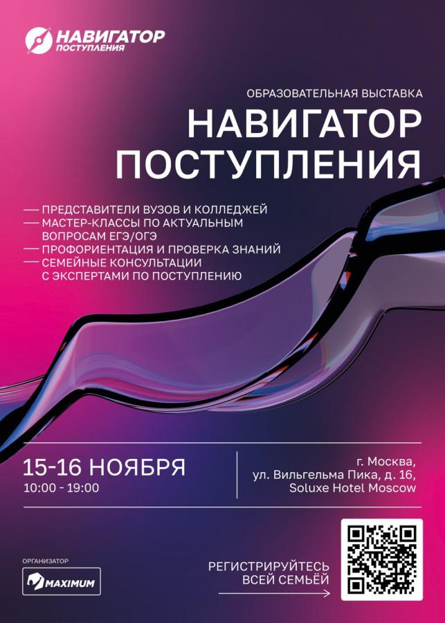 Приглашаем вас принять участие в крупнейшей образовательной выставке "Навигатор Поступления", которая пройдет в Москве 15-16 ноября.