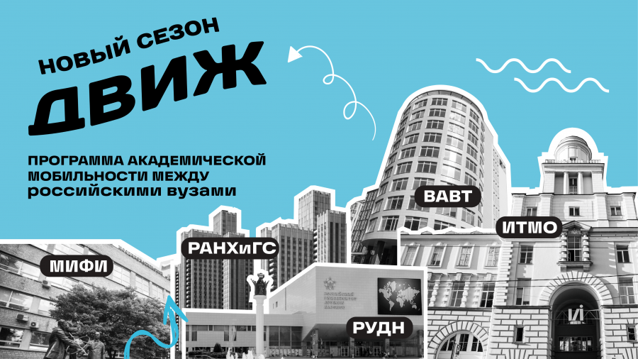 НИЯУ МИФИ совместно с ведущими вузами России — ВАВТ, ИТМО, РУДН и СВФУ — приглашает бакалавров 2–3 курсов и специалистов 2–4 курсов принять участие в программе внутрироссийской академической мобильности.