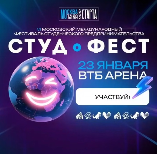 В Москве пройдёт самый масштабный фестиваль молодёжного предпринимательства «СтудФест». 23 января на площадке спортивного комплекса «ВТБ Арена» встретятся студенты, учёные, представители бизнеса и города.