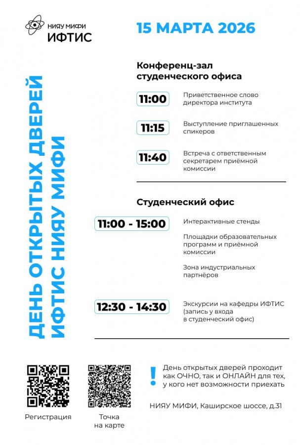 Друзья, напоминаем вам, что совсем скоро состоится День открытых дверей Института физико-технических интеллектуальных систем НИЯУ МИФИ.