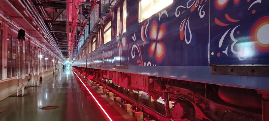 Важной особенностью тематического поезда является его визуальное оформление: яркая и оригинальная «атомная хохлома» разом и привлекает внимание и создает по-настоящему праздничную атмосферу.