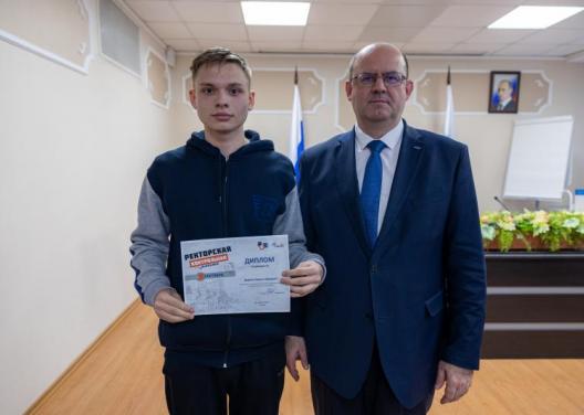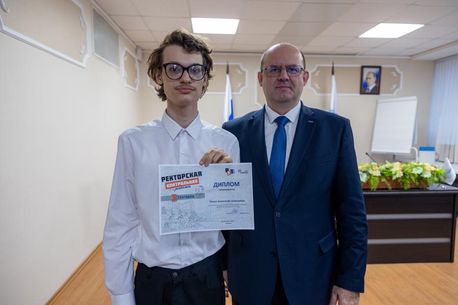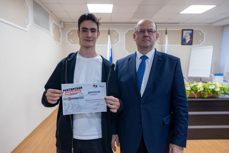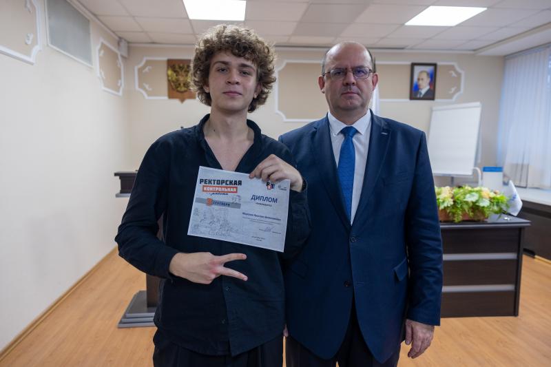 Ректор НИЯУ МИФИ Владимир Шевченко с Алексеем Паниным, написавшим Ректорскую контрольную по трем предметам лучше всех