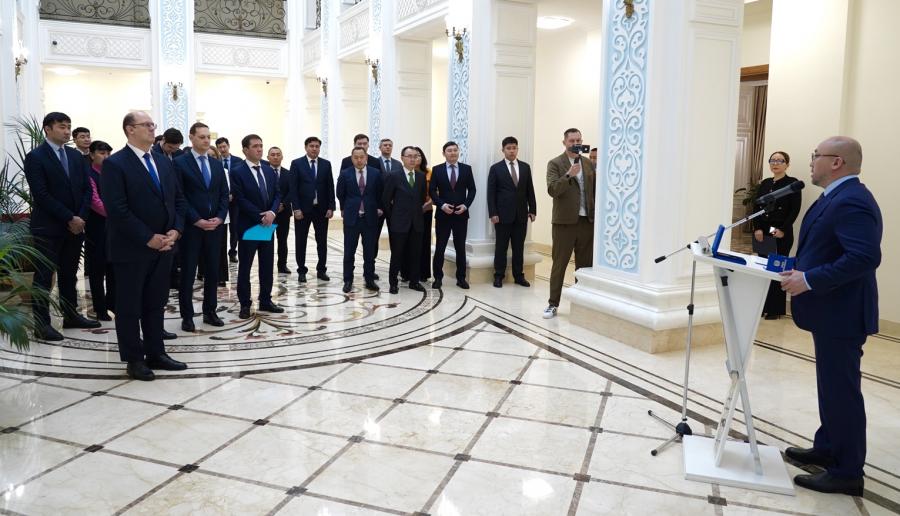 Послу Казахстана было передано благодарственное письмо на имя Президента Республики Казахстан Касым-Жомарта Кемелевича Токаева.