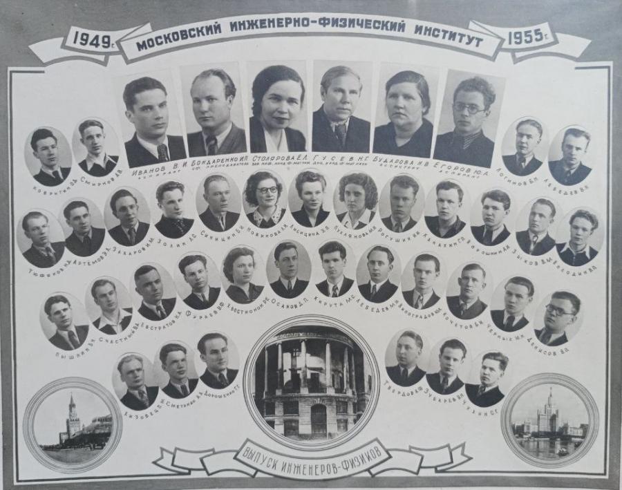 Первый выпуск инженерно-физического факультета 1955 года. В библиотеке открыта выставка к юбилею, где представлено множество интересных материалов, в том числе кандидатские работы выпускников кафедр-юбиляров.