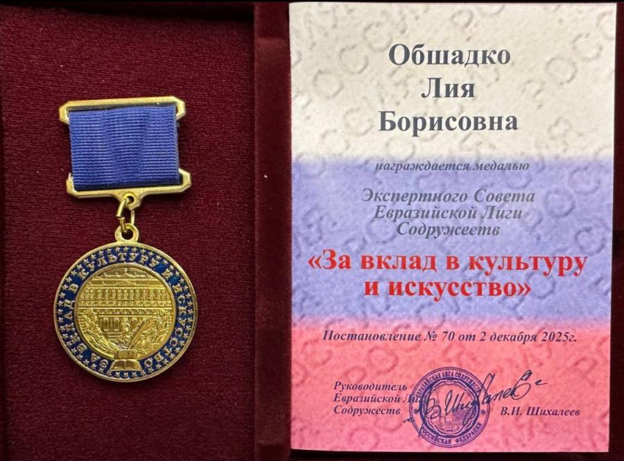Экспертный Совет Евразийской Лиги Содружества наградил хормейстера Академического мужского хора МИФИ Лию Общадко медалью «За вклад в культуру и искусство».