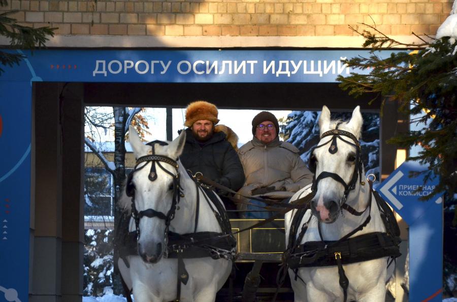 Всё это происходило под ярким январским солнцем и под веселые русские народные песни. Не остались в стороне и взрослые – ректор НИЯУ МИФИ Владимир Шевченко и проректоры Елена Весна и Михаил Гуров тоже приняли участие в празднике, прокатившись в экипаже.