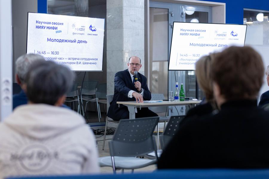 В рамках научной сессии и в преддверии Дня российской науки в МИФИ прошел «Ректорский час». Встреча ректора Владимира Шевченко с сотрудниками, аспирантами и учеными была настолько насыщенной, что запланированный час растянулся на 135 минут. Возможно, сработало гравитационное замедление времени, а может, просто было о чем поговорить. Выделяем ключевые темы.