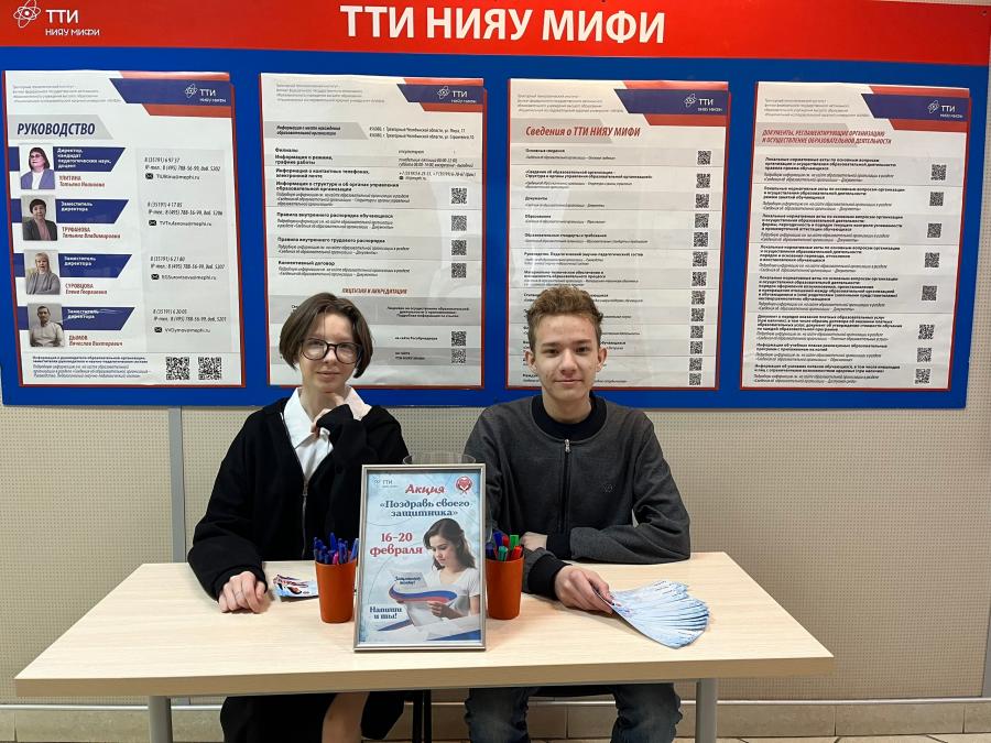 Не менее запоминающимся стал праздник и для региональных площадок НИЯУ МИФИ. В Нововоронежском политехническом институте состоялся традиционный военно-спортивный конкурс «А ну-ка, парни!». Соревнование объединило студентов, преподавателей и почетных гостей вуза. В Трехгорном технологическом институте прошла акция «Поздравь своего защитника» – в канун праздника волонтёры доставили около 100 открыток адресатам, наполняя их день теплом и вниманием. Студенты СФТИ приняли участие в открытии барельефов, посвященных ключевым сражениям Великой Отечественной войны на площади Победы в Снежинске. В Обнинском институте атомной энергетики при поддержке Музея истории города Обнинска была представлена передвижная выставка «Штаб Западного фронта на обнинской земле». Экспозиция позволила по-новому взглянуть на подвиг защитников Родины, ощутить атмосферу фронтовых лет. В ИАТЭ также прошел мастер-класс по плетению маскировочных сетей и концерт.