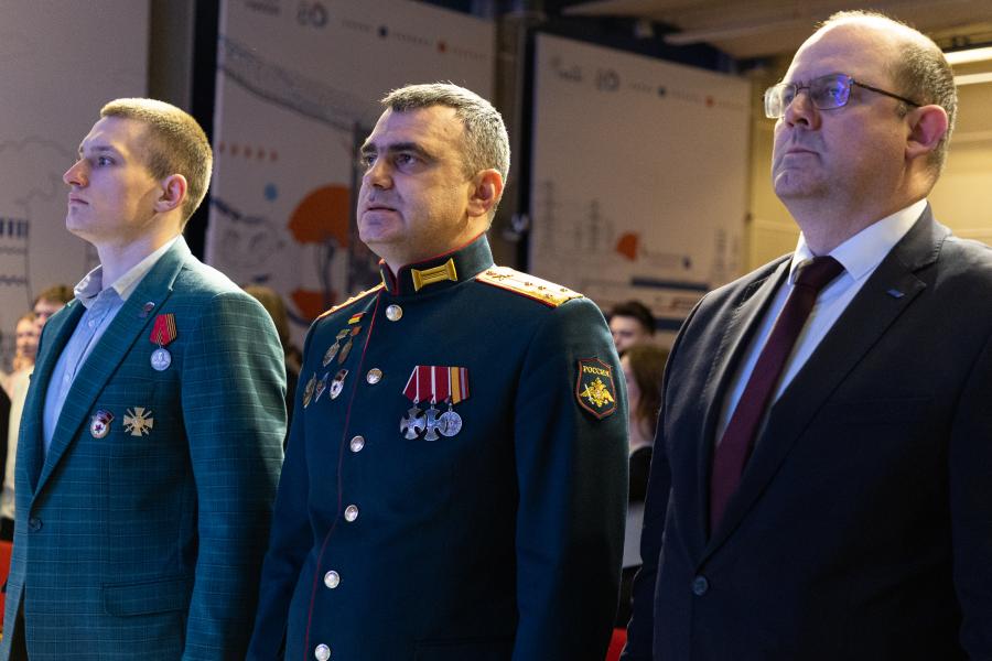 В актовом зале МИФИ состоялась встреча с почетным гостем праздника – ветераном специальной военной операции, кавалером двух орденов Мужества, участником программы «Время героев», сотрудником госкорпорации «Росатом» Павлом Якушевым. Он поделился со студентами личным опытом, рассказал о буднях на передовой, мужестве и взаимовыручке, а также ответил на вопросы аудитории. Отдельно гость подчеркнул важность волонтерской помощи и поддержки бойцов в тылу, отметив, что изготовление окопных свечей, маскировочных сетей и донорство крови, которым студенты МИФИ занимались в течение дня, — это неоценимый вклад в общее дело.
