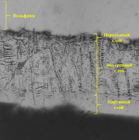 Ученые предложили решение задачи, ранее считавшейся неразрешимой, – делать внутренние поверхности реактора из вольфрама. Вольфрам – самый тугоплавкий из металлов, однако и он может повреждаться при соприкосновении с плазмой. Предложенный способ защиты заключается в диффузионном насыщении вольфрамовой поверхности атомами бора. В результате на внутренней стенке реактора формируются защитные слои из боридов – химических соединений бора и вольфрама, которые относятся к классу высокотемпературных материалов. По словам заместителя генерального директора ООО «РАРМА» Сергея Ипатова, борированный слой на поверхности вольфрама должен сгладить главный недостаток этого металла – попадание многозарядных примесей в плазму токамака. У защищенной таким образом поверхности появляется необычное свойство: микротрещины, возникающие при мощных тепловых ударах, самостоятельно закрываются путем плавления окислов бора с образованием стекловидной фазы.