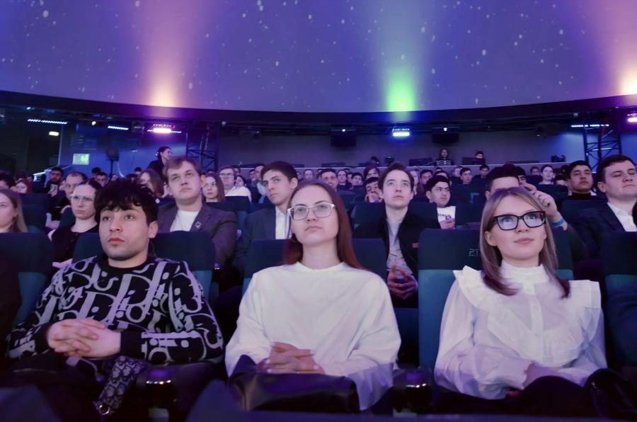 Мероприятие проходило на площадке самого большого конференц-зала России, расположенного в РТУ МИРЭА и оборудованного мощными проекторами и гигантским куполом, на котором зажигались звезды, вращались планеты и появлялись новые миры.