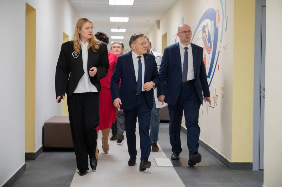 Губернатор Калужской области Владислав Шапша, генеральный директор госкорпорации «Росатом» Алексей Лихачев, ректор Национального исследовательского ядерного университета МИФИ (НИЯУ МИФИ) Владимир Шевченко ознакомились с ходом реконструкции кампуса международного научно-образовательного центра ядерного и смежного образования «Обнинск Тех» в Институте атомной энергетики Национального исследовательского ядерного университета МИФИ (ИАТЭ НИЯУ МИФИ), где полностью был обновлен вестибюль, установлены современные турникетные системы, организованы удобные зоны ожидания и навигации, открыта обновленная входная группа.